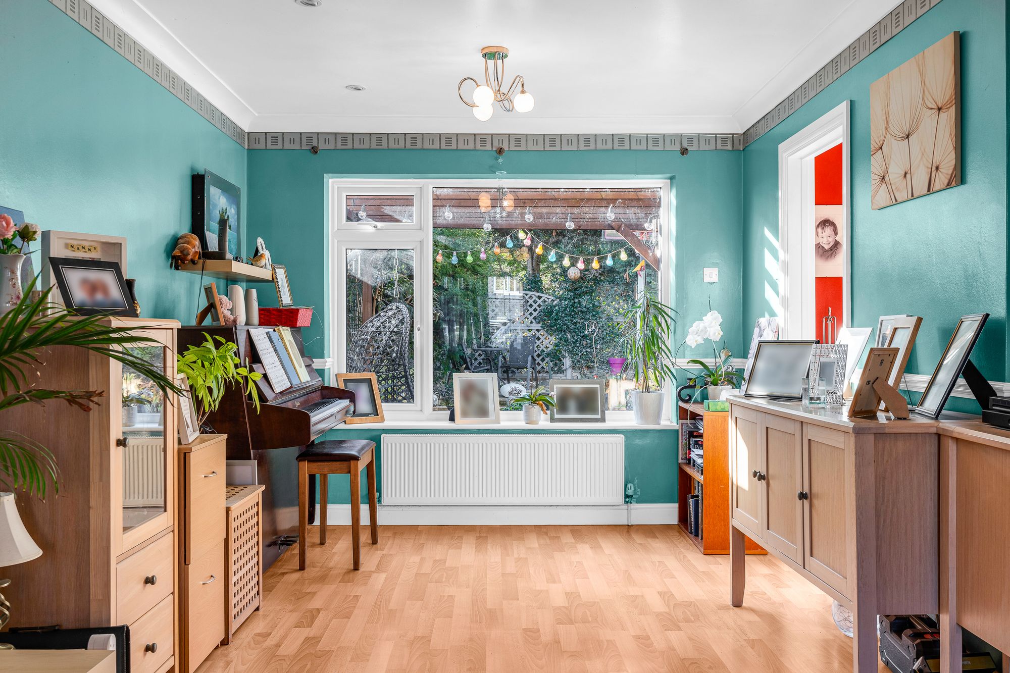 With double glazed sliding doors to the rear garden , radiator, wood effect flooring, door to: