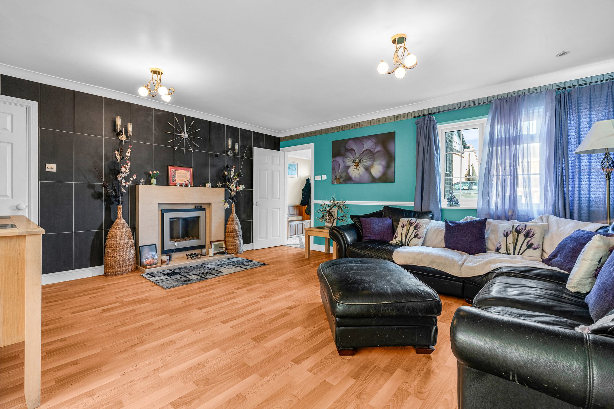 Dual aspect with double glazed windows to front and rear aspect, wood effect flooring, large understairs storage cupboard, two radiators, feature fireplace, door to: