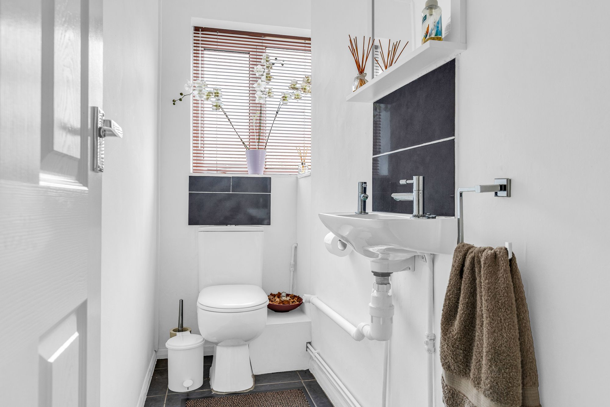 With Upvc double glazed window to front aspect with obscure glass. Fitted with a suite comprising low flush wc, wall hung wash hand basin, tiled splashback areas, tiled flooring.
