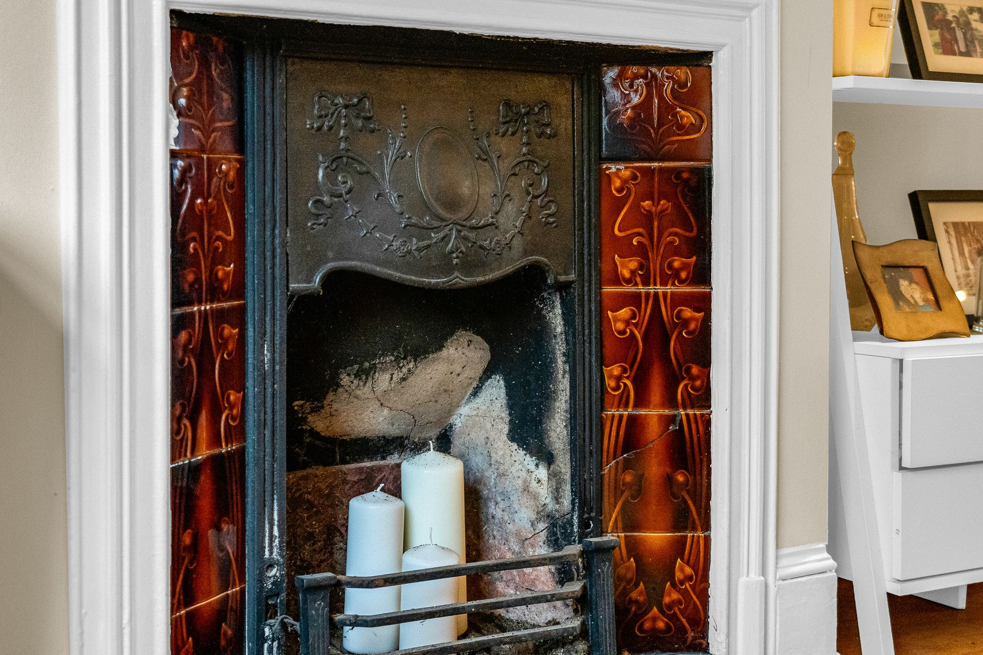With double glazed sash style window to front aspect, radiator, attractive feature fireplace, wood flooring, open to: