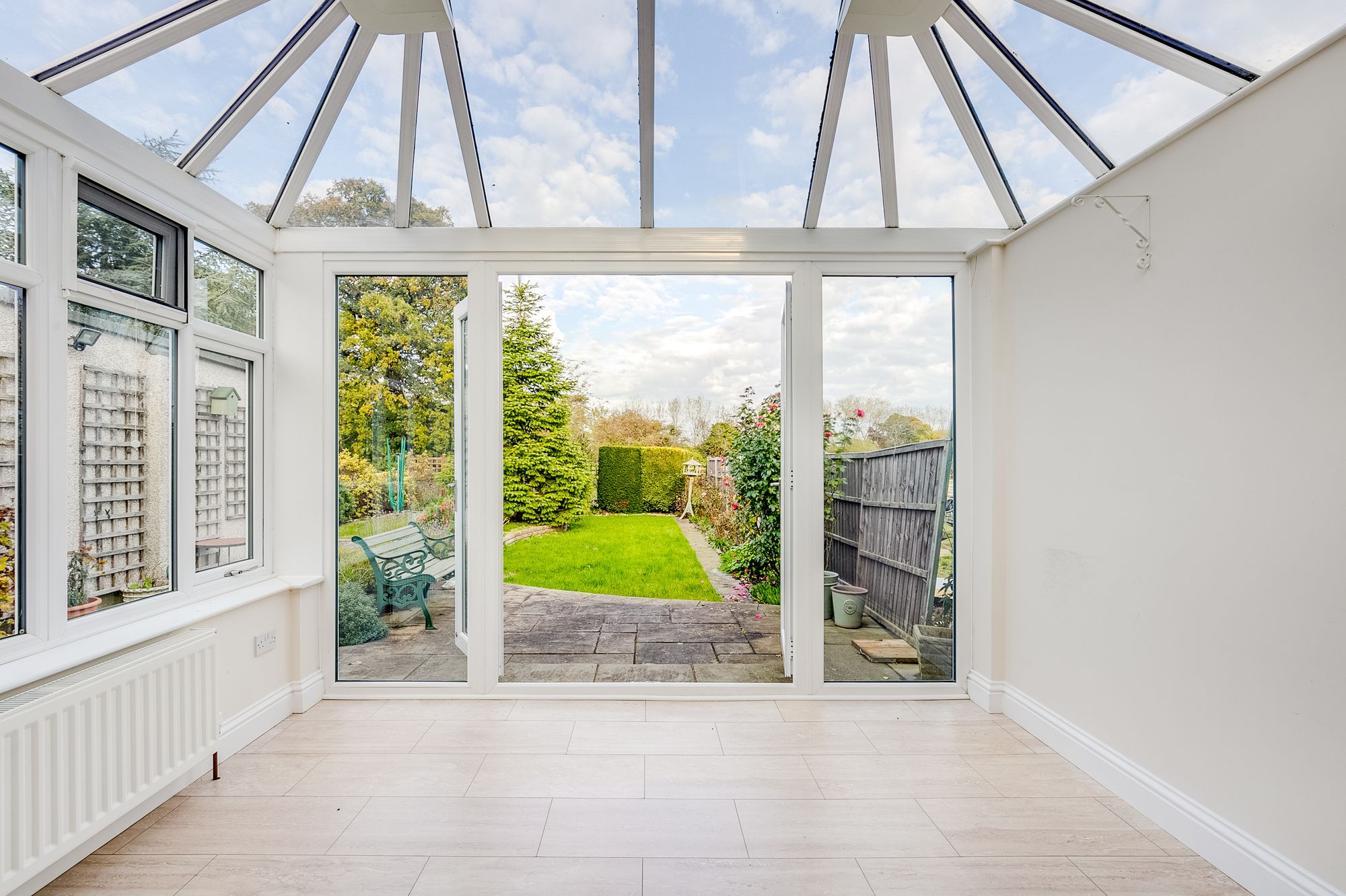 Of double glazed and brick construction with double doors opening onto the rear garden, tiled flooring, radiator.