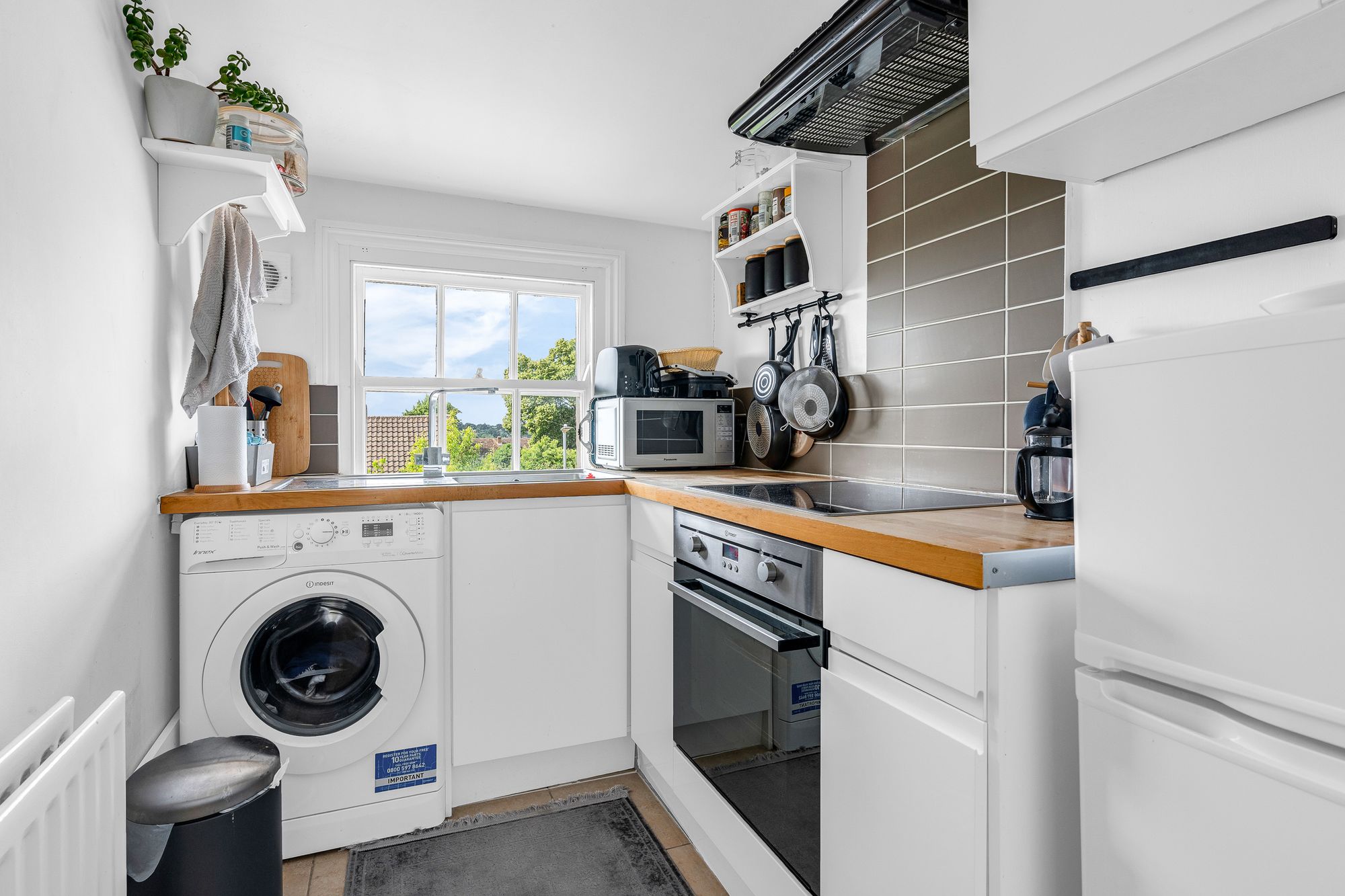 With sash window to side aspect. Fitted with a range of wall and base storage units with work surfaces over incorporating a stainless steel sink and drainer unit, built in oven with ceramic hob and extractor fan over, tiled surrounds. space for washing machine and space for fridge freezer, tiled flooring, radiator.