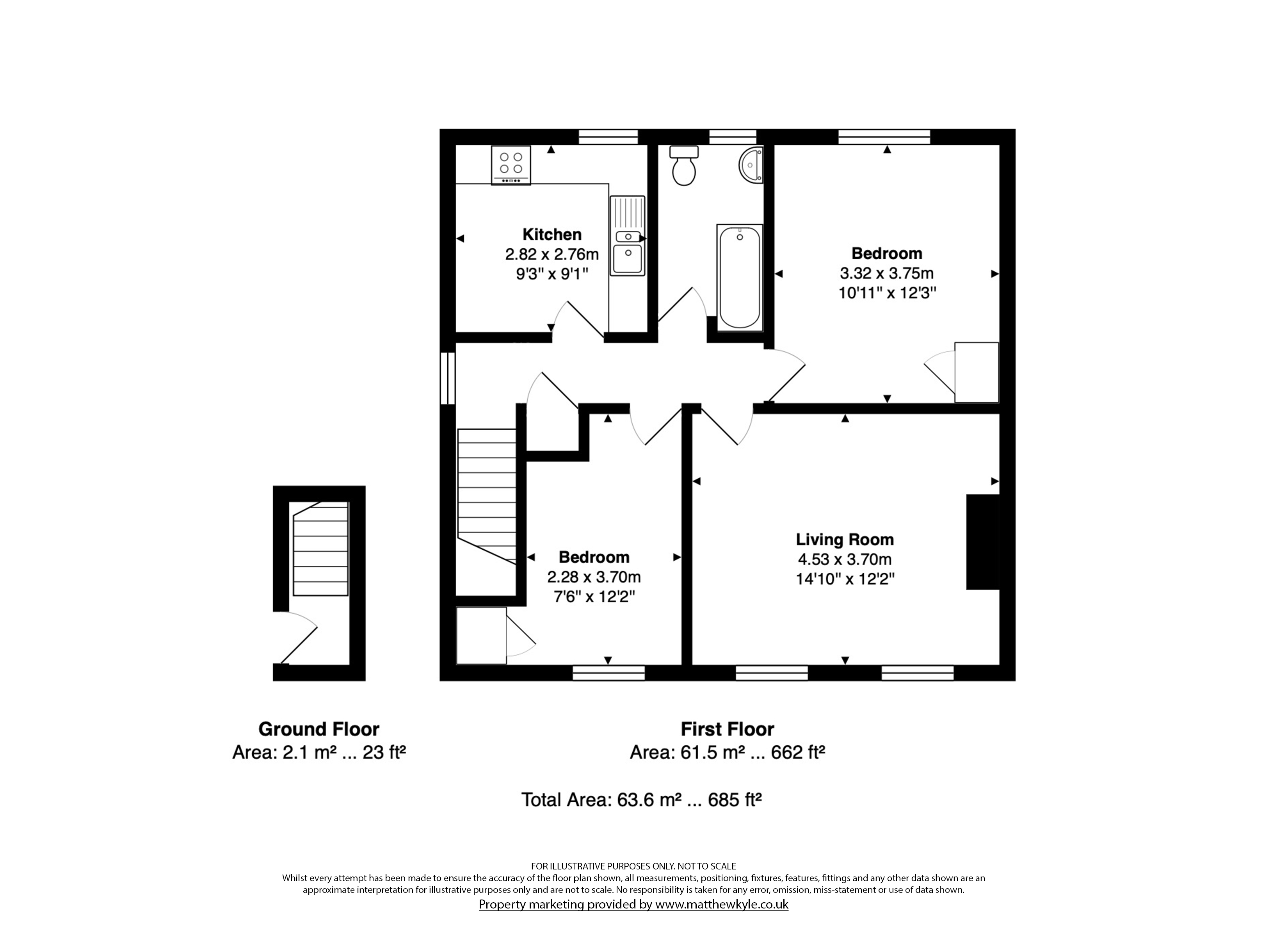 Bedroom Two 7' 6" x 12' 2" (2.28m x 3.70m)