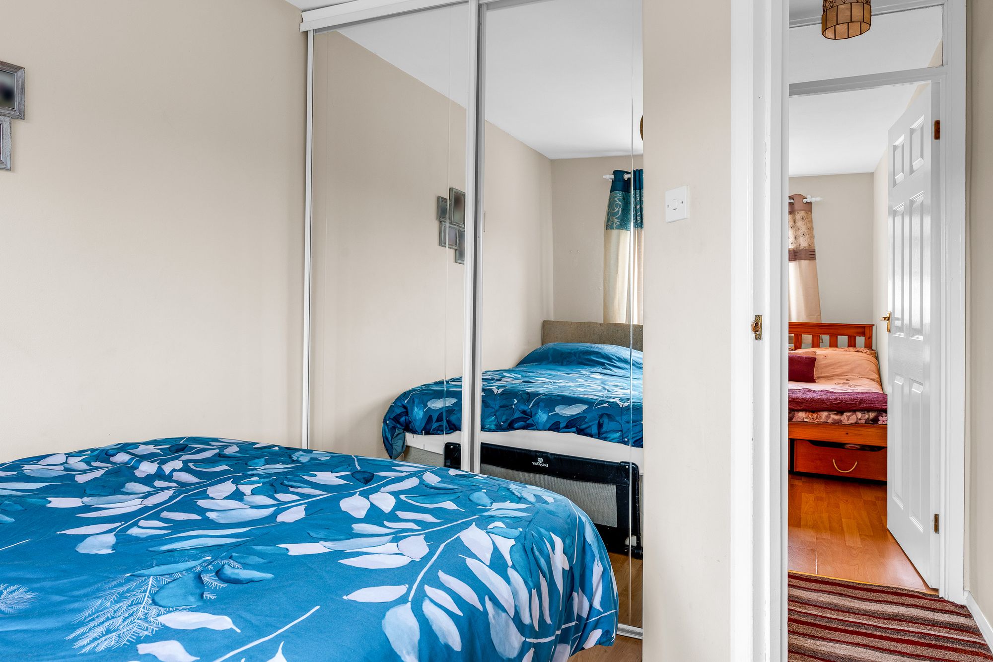 With double glazed window to front aspect, radiator, wood flooring, fitted wardrobe cupboard with mirrored sliding doors, built in storage cupboard.