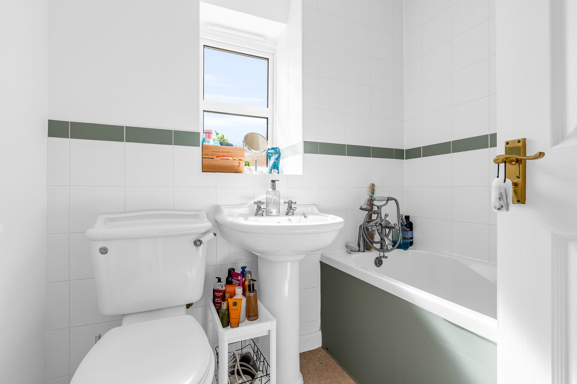With double glazed window to side aspect with obscure glass. Fitted with a suite comprising panel enclosed bath, low flush wc, pedestal wash hand basin, tiled splash back areas, radiator.
