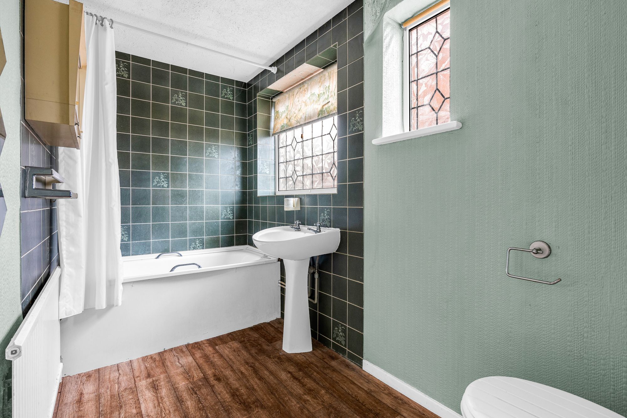 With two double glazed windows to side aspect. Fitted with a suite comprising panel enclosed bath with shower over, pedestal wash hand basin, dual flush wc, tiled splash back areas, wood effect flooring, radiator.